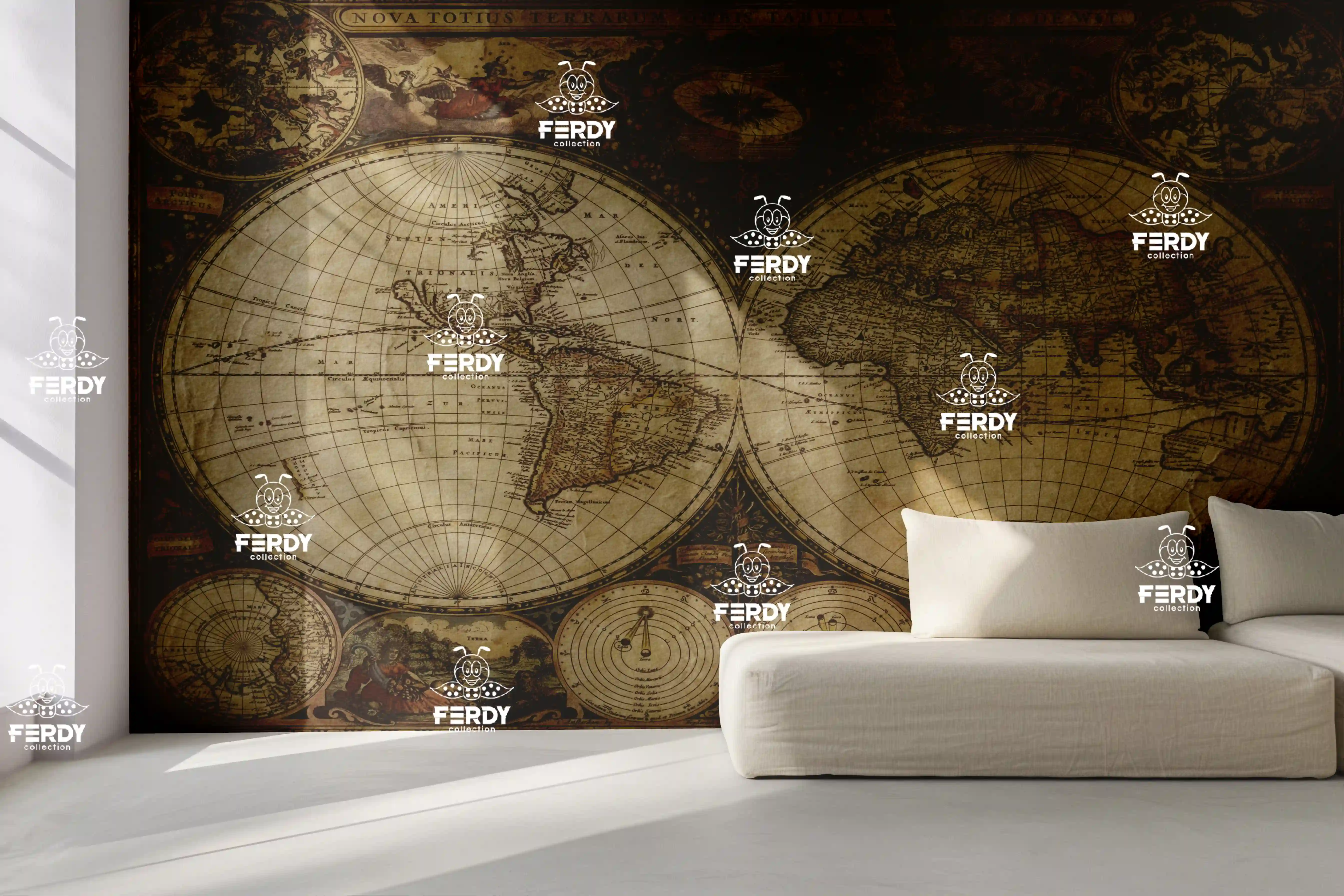 بکدراپ فردی کالکشن طرح نقشه جهان | قابل شستشو رنگ ثابت | موجود و آماده ارسال (73 در 108 سانتیمتر)