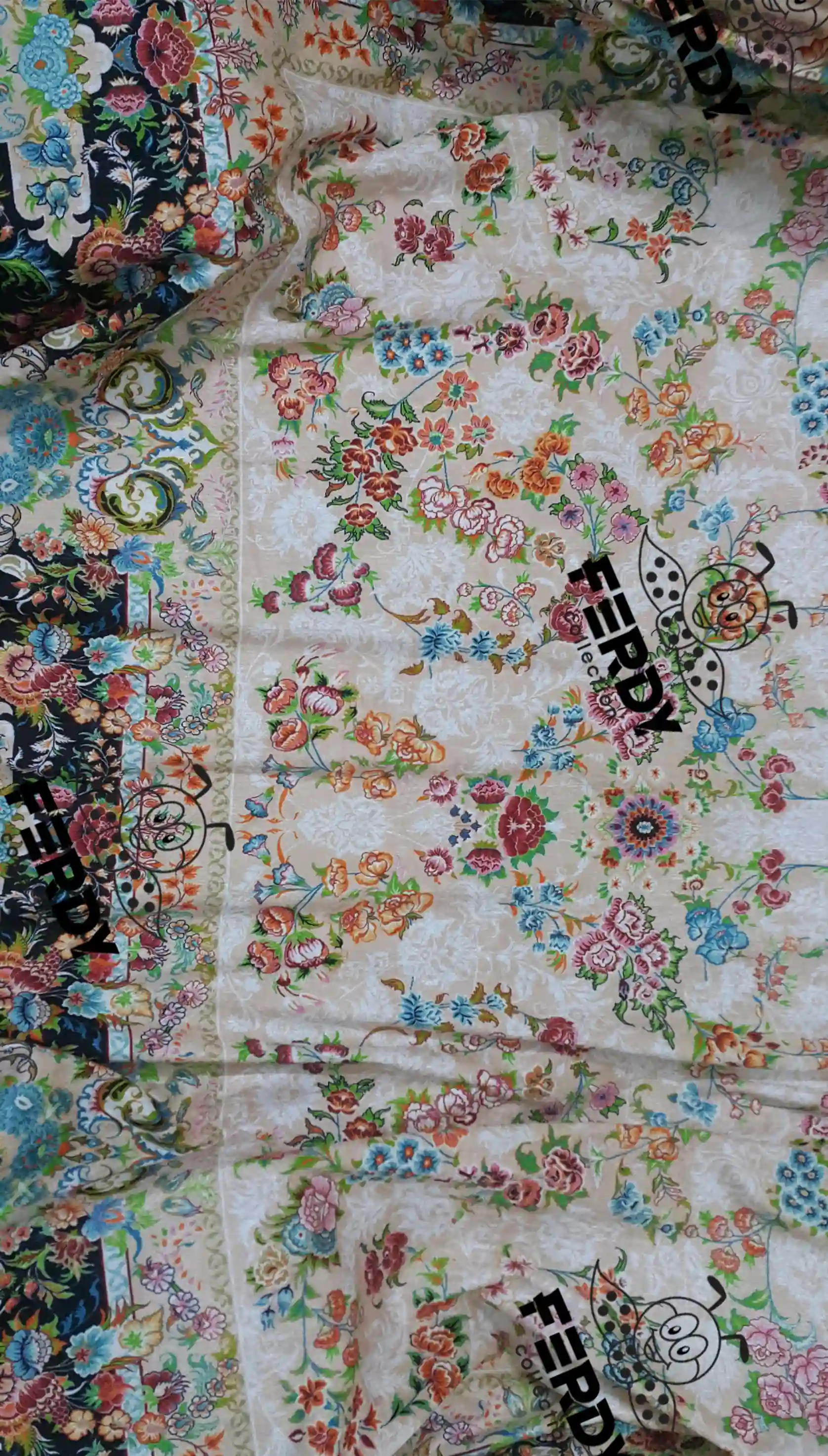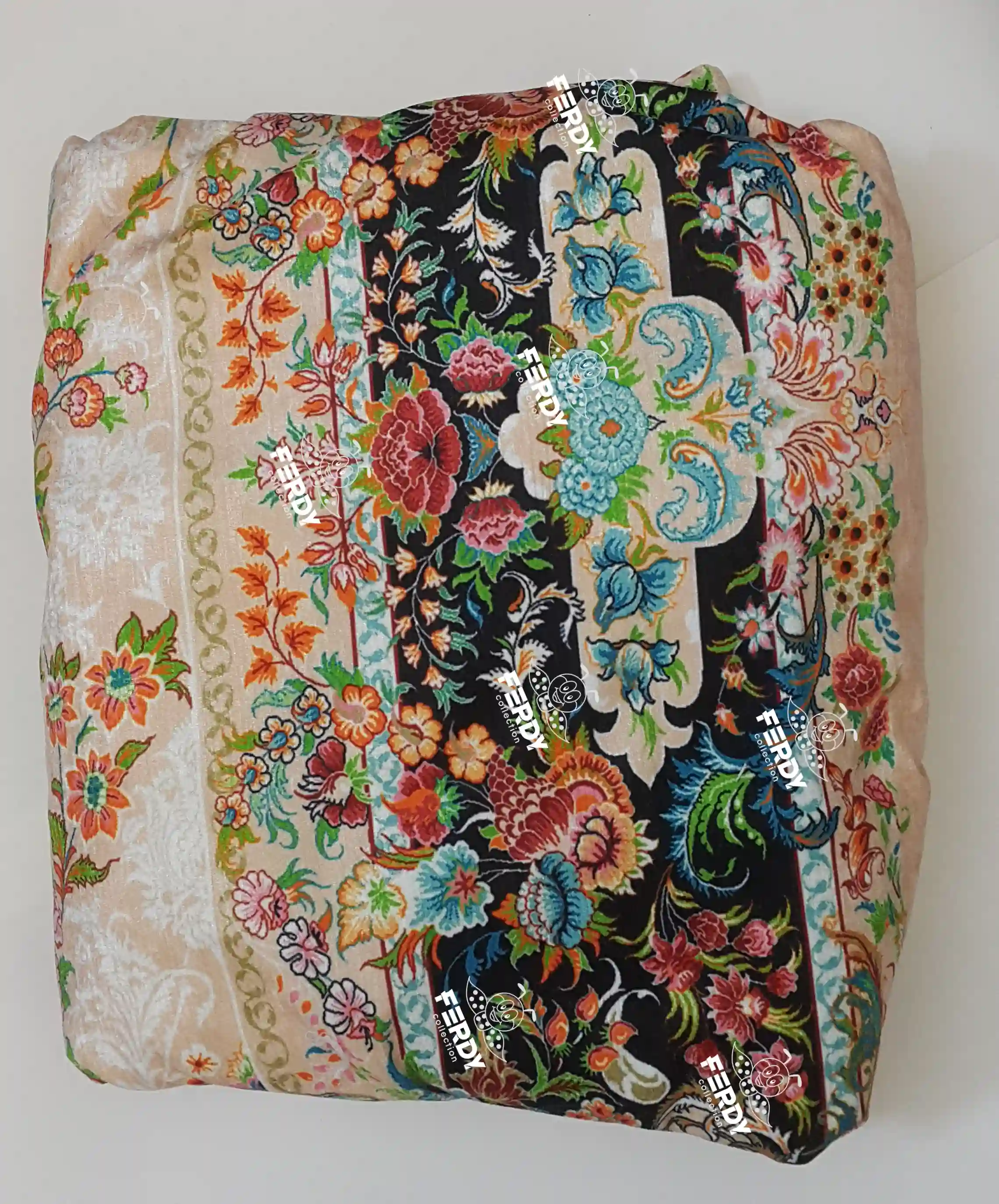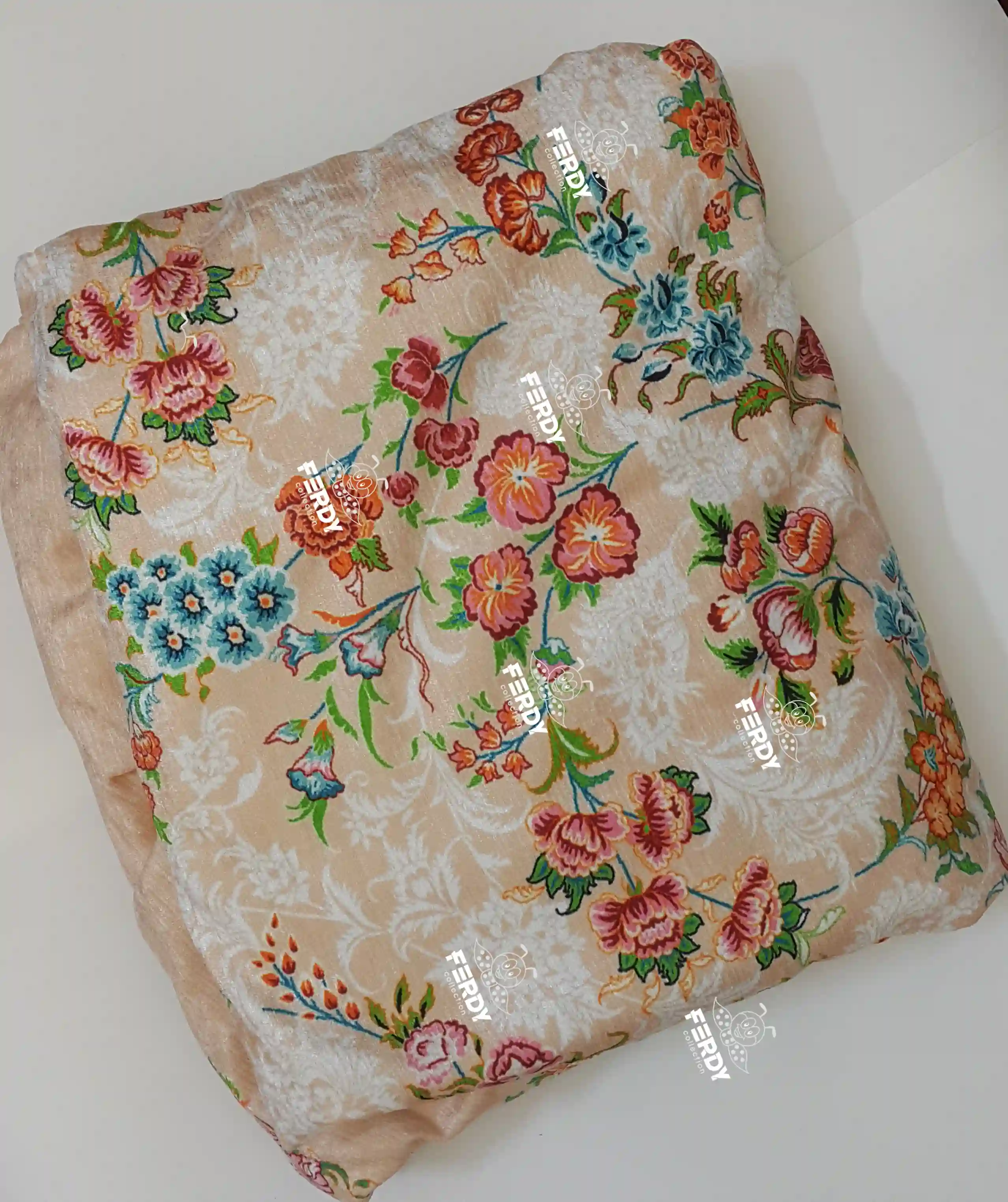روفرشی مخمل شانل کشدار فردی کالکشن طرح گل‌دار– کیفیت چاپ و جنس (f-1091)