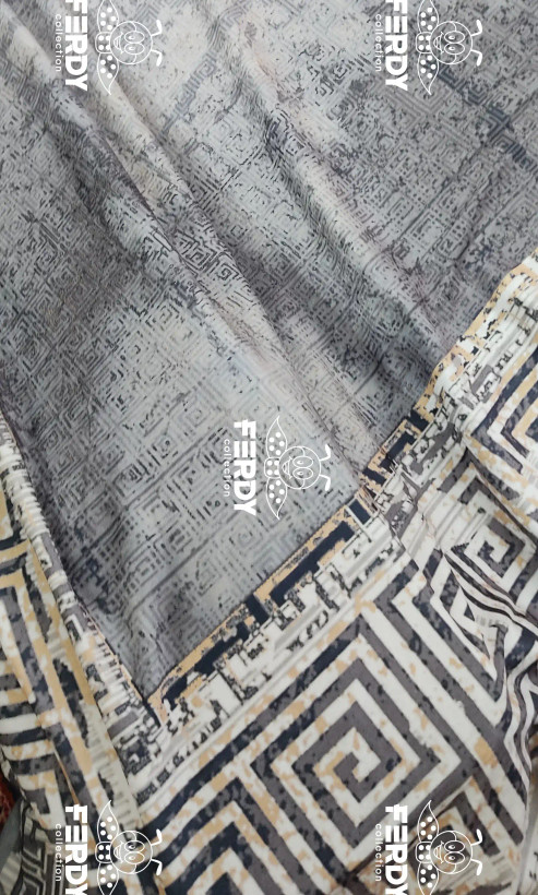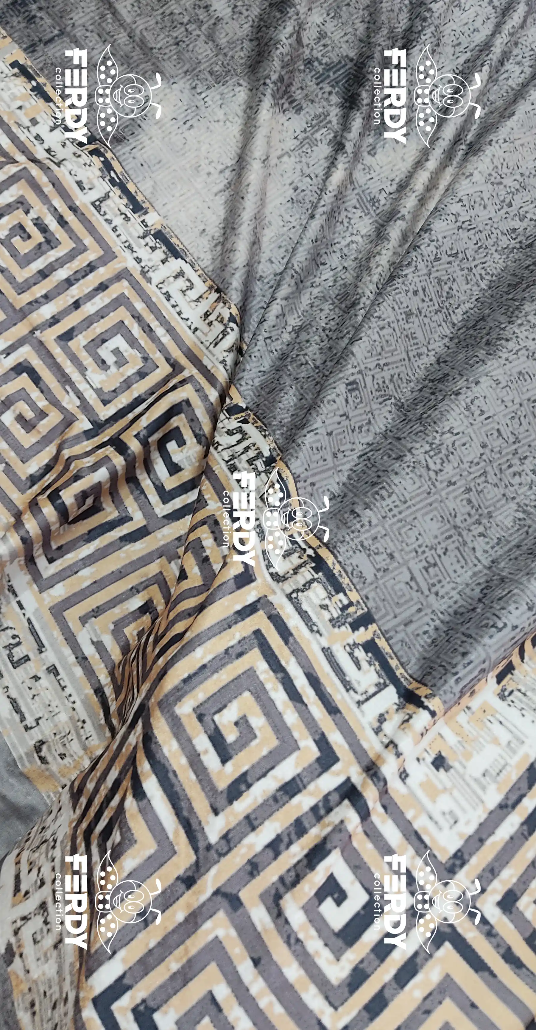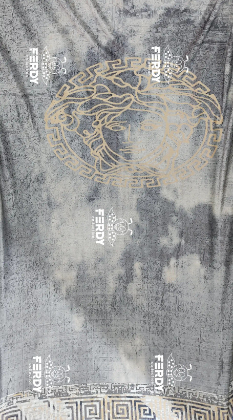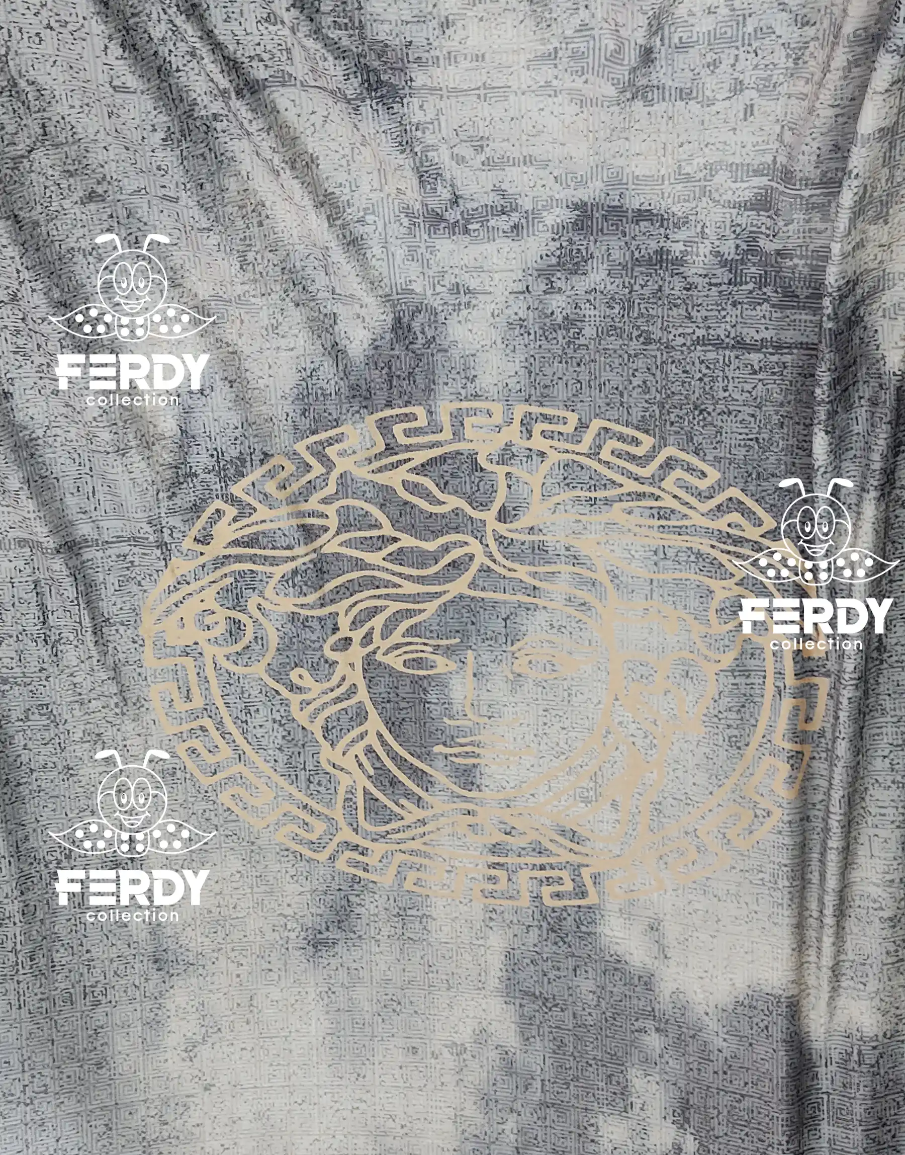 روفرشی مخمل شانل کشدار فردی کالکشن طرح ورساچه – رنگ طوسی و کرم (1440)