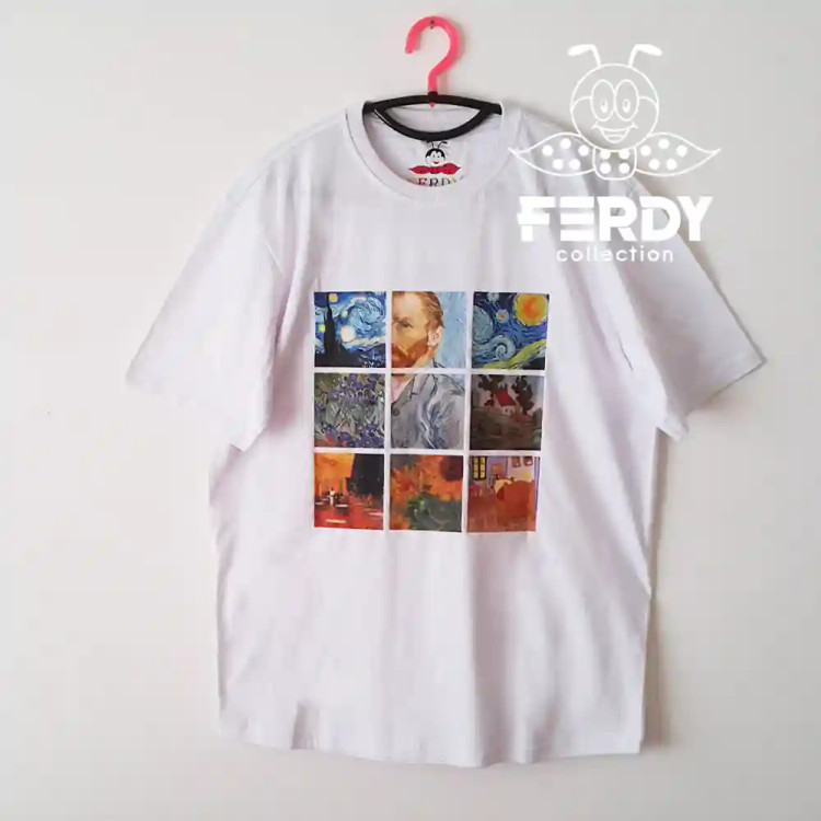 تیشرت فردی کالکشن نخی چاپ دی تی اف طرح ونگوگ