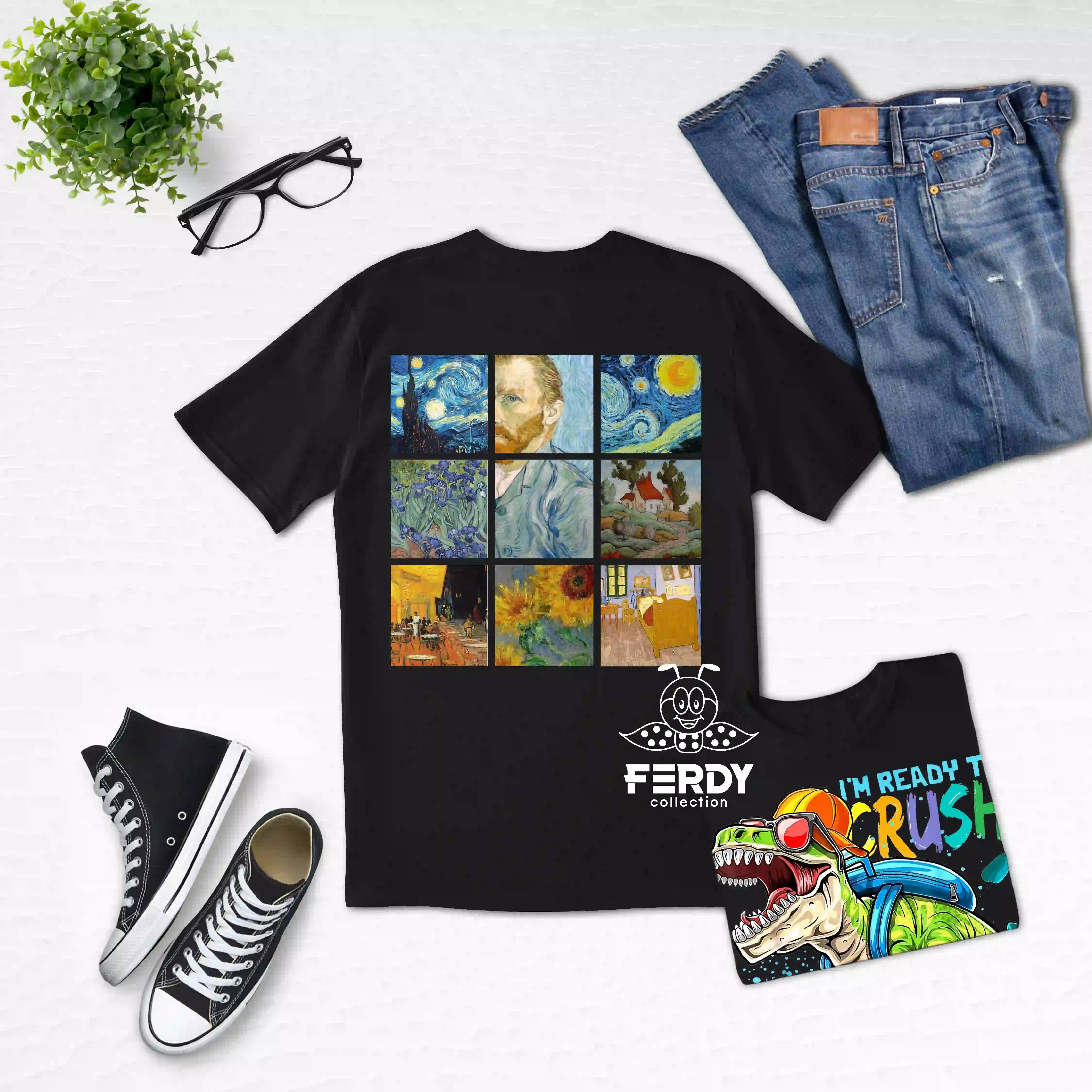 تیشرت فردی کالکشن نخی چاپ دی تی اف طرح ونگوگ