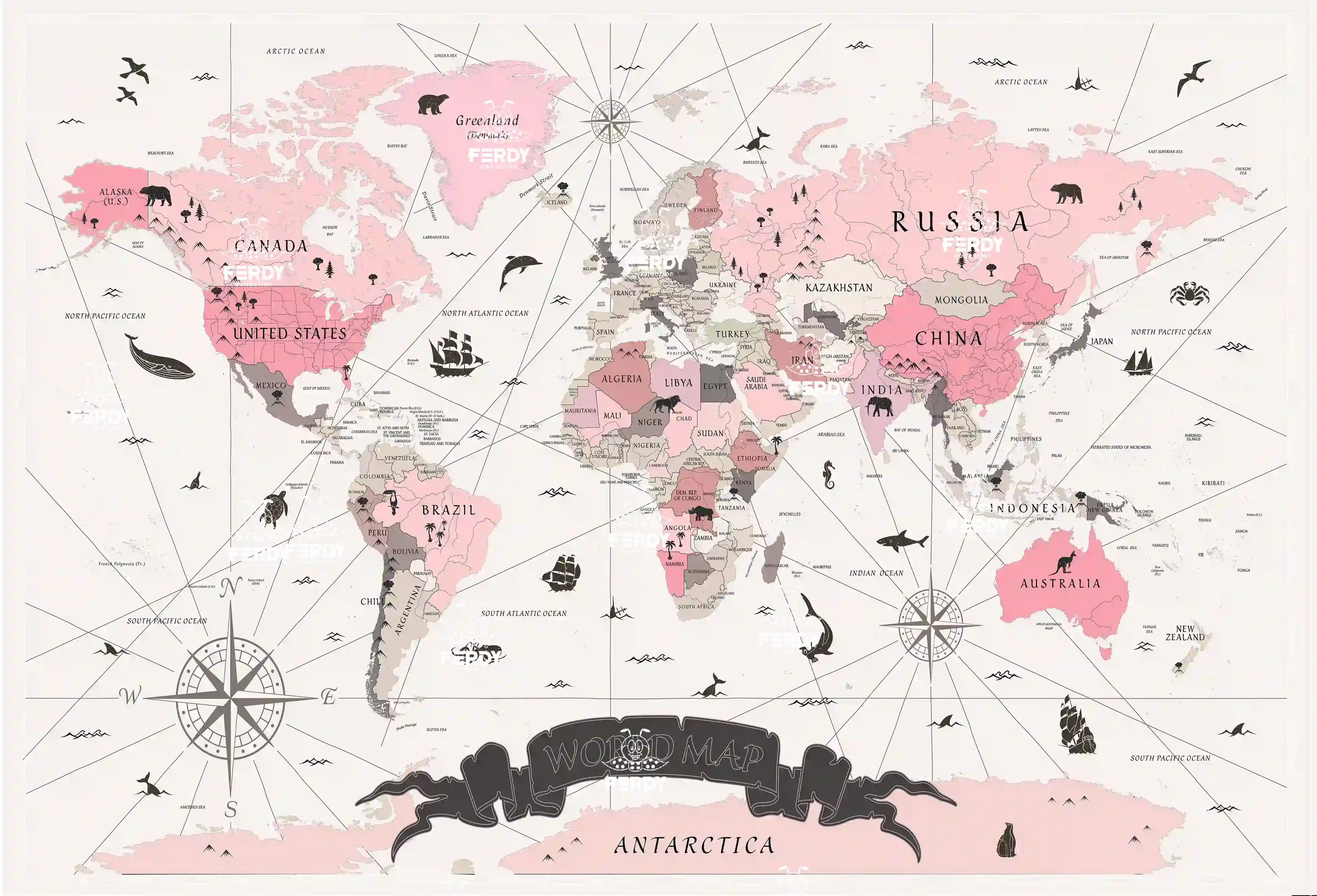 بکدراپ فردی کالکشن طرح نقشه جهان | قابل شستشو رنگ ثابت