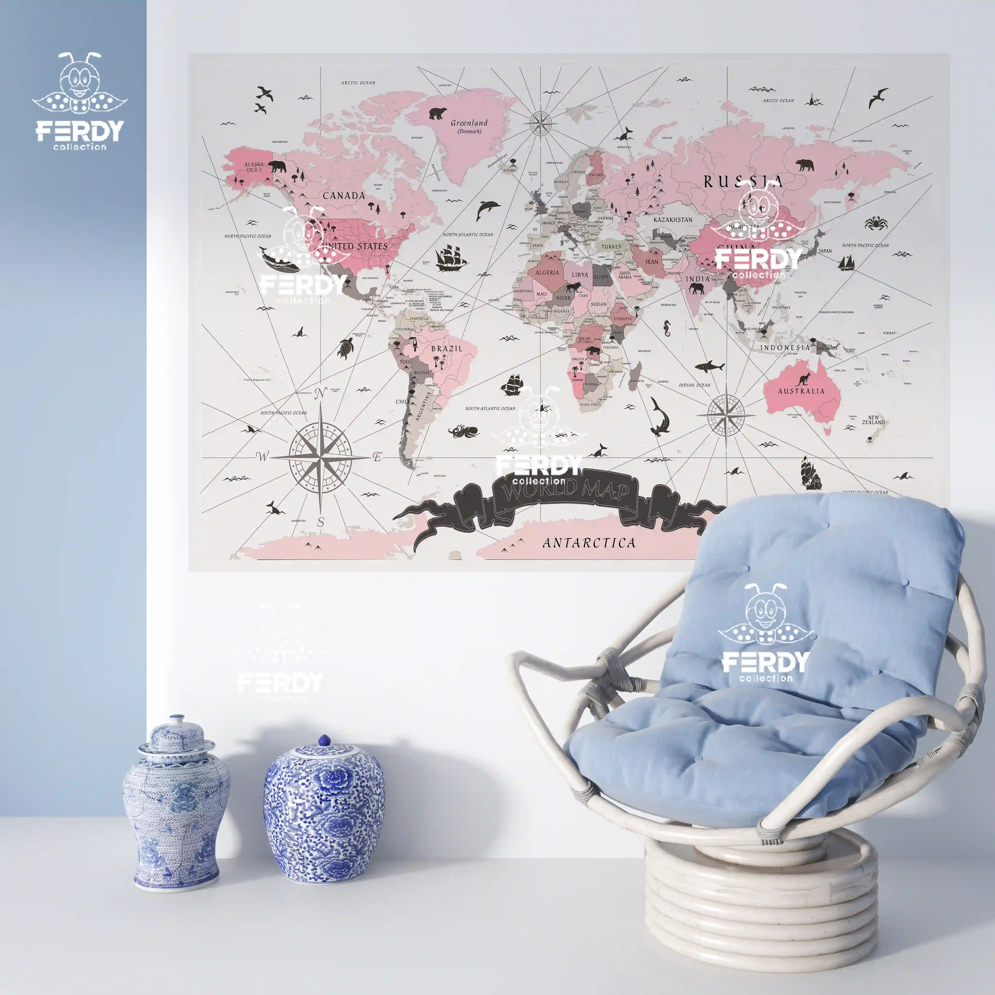 بکدراپ فردی کالکشن طرح نقشه جهان | قابل شستشو رنگ ثابت
